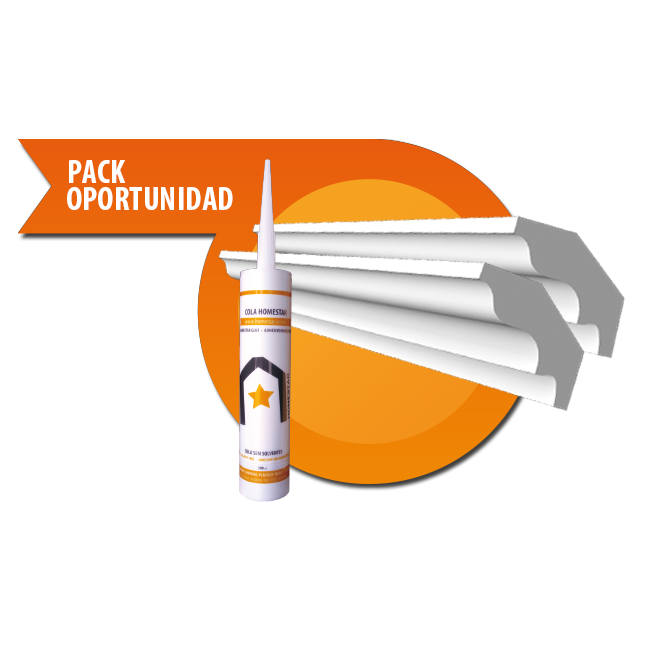 HOMESTAR® ha creado el pack especial MOLDURAS DECORATIVAS CÁCERES. Las Cornisas en poliestireno HOMESTAR® son fáciles de aplicar con pegamento HOMESTAR® incluido en pack. Precio promocional outlet.